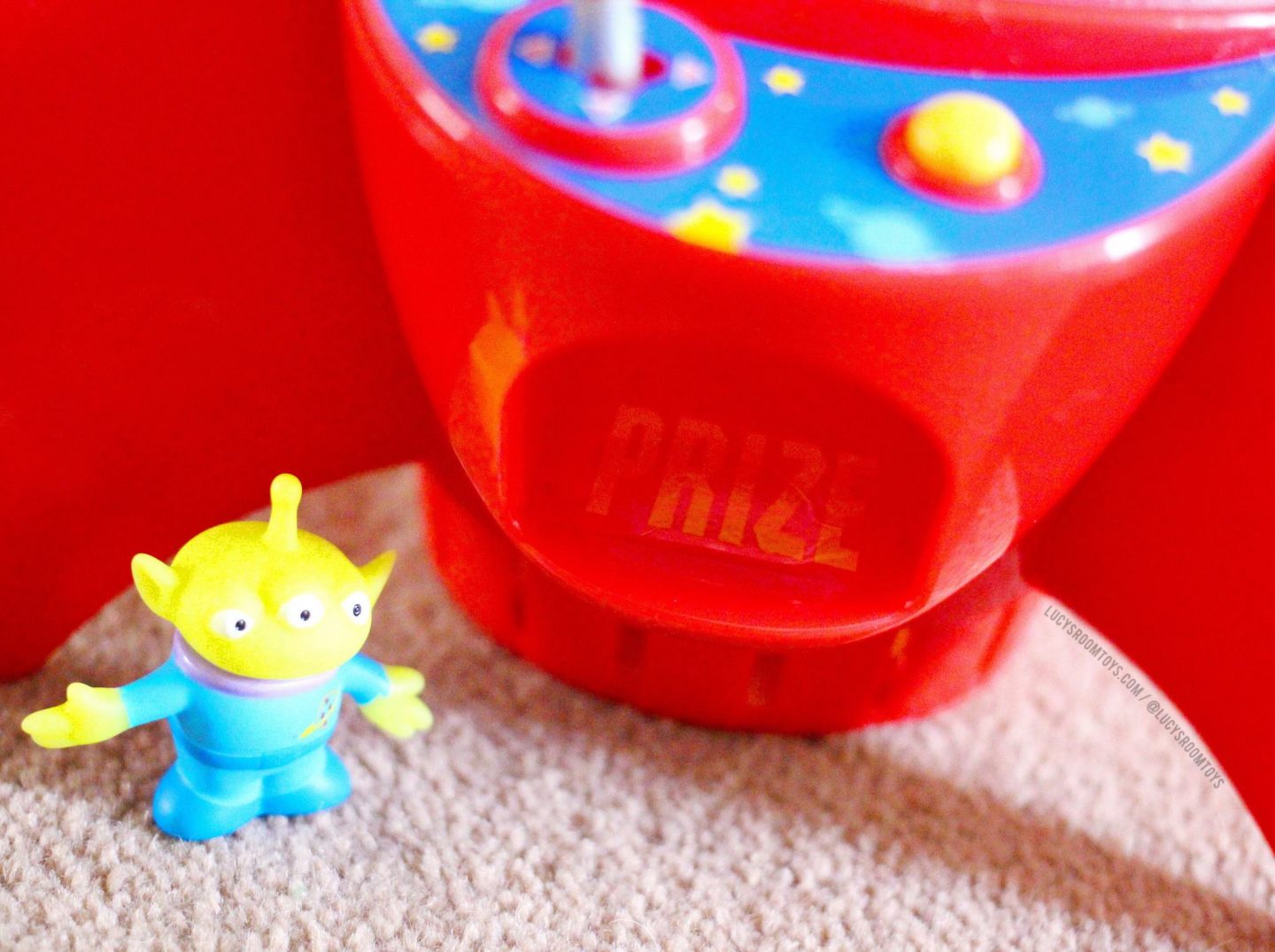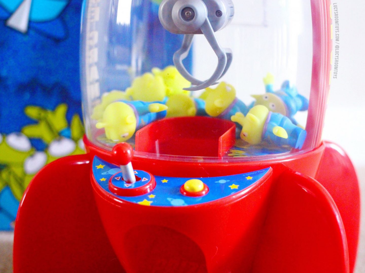 Of course, the coolest thing about this though, is that it is in actual working mini claw machine! You move the claw with the joystick and press the yellow button to drop it and try and pick up an Alien. I have to say, it’s pretty hard to pick one up, but it’s super fun and I guess it makes it more realistic to real machines ?