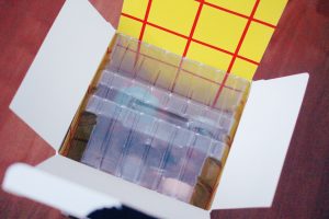 The packaging is pretty cool; the outer brown carton has a gold sheriff star on the front, and ANDY written on the back. The box inside the carton is cow print like Woody’s waistcoat and inside it is like the yellow check design of Woody’s shirt. Woody and hismpieces and accessories are in plastic trays stacked together inside the box so it’s all neat and easy to store.