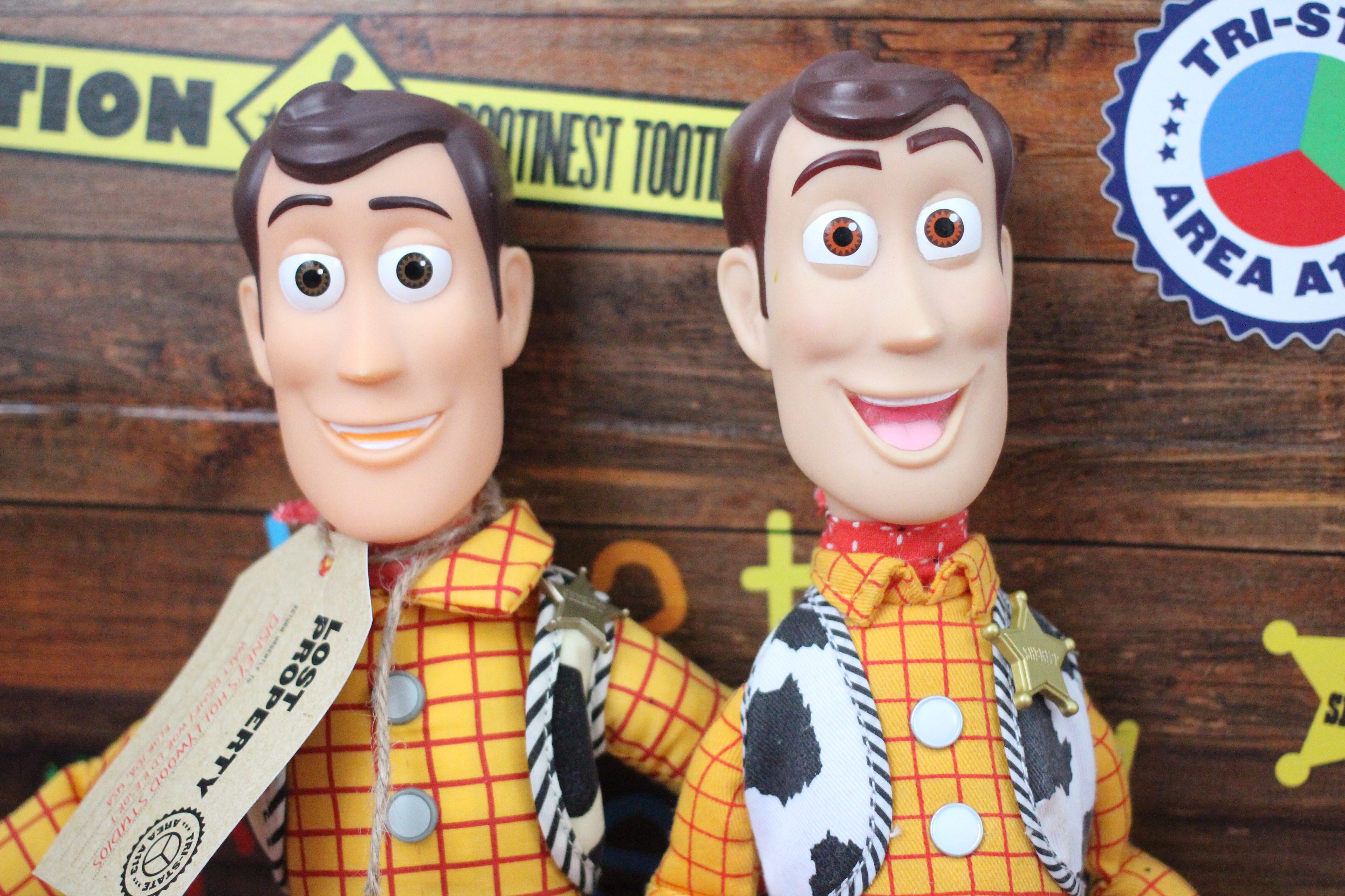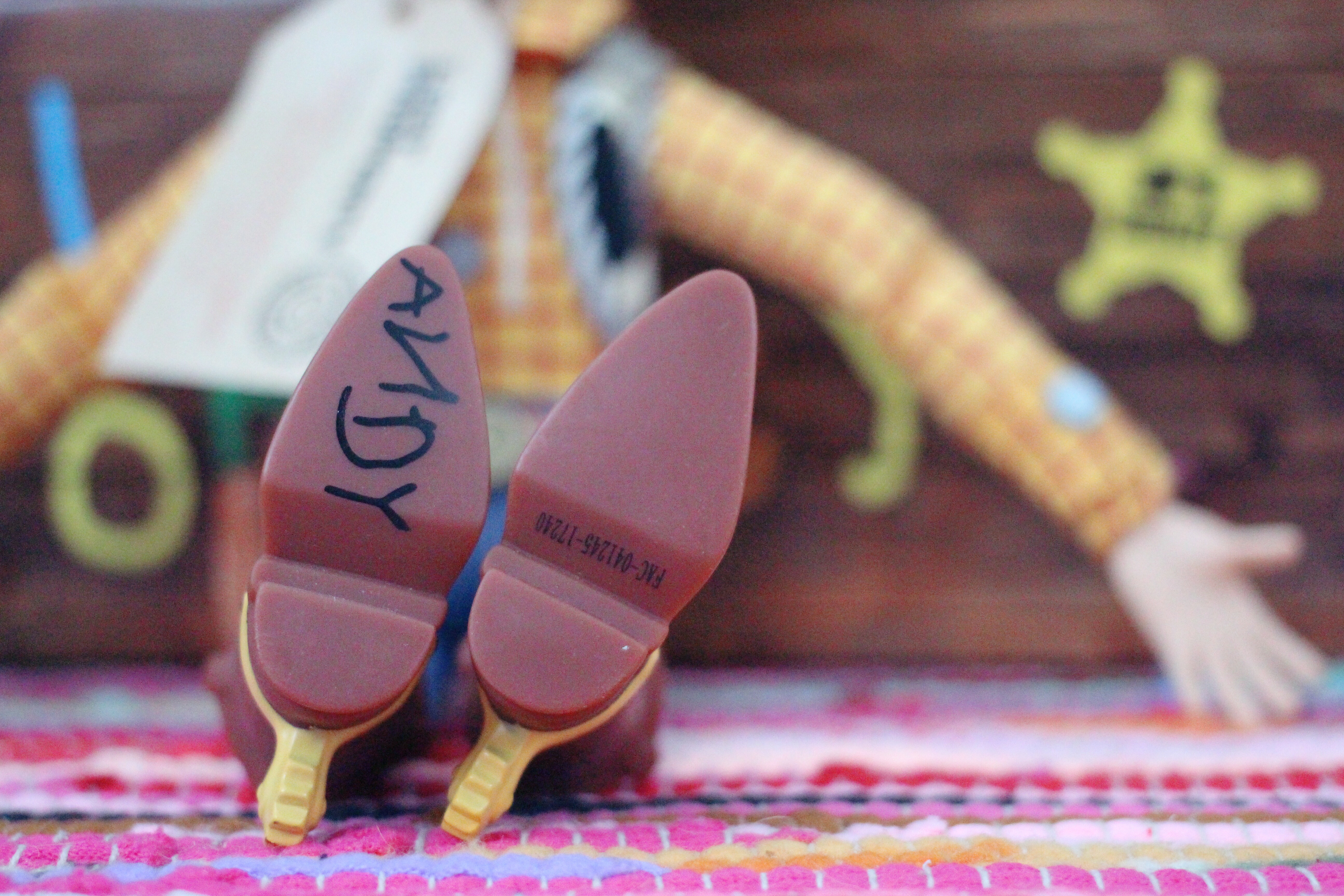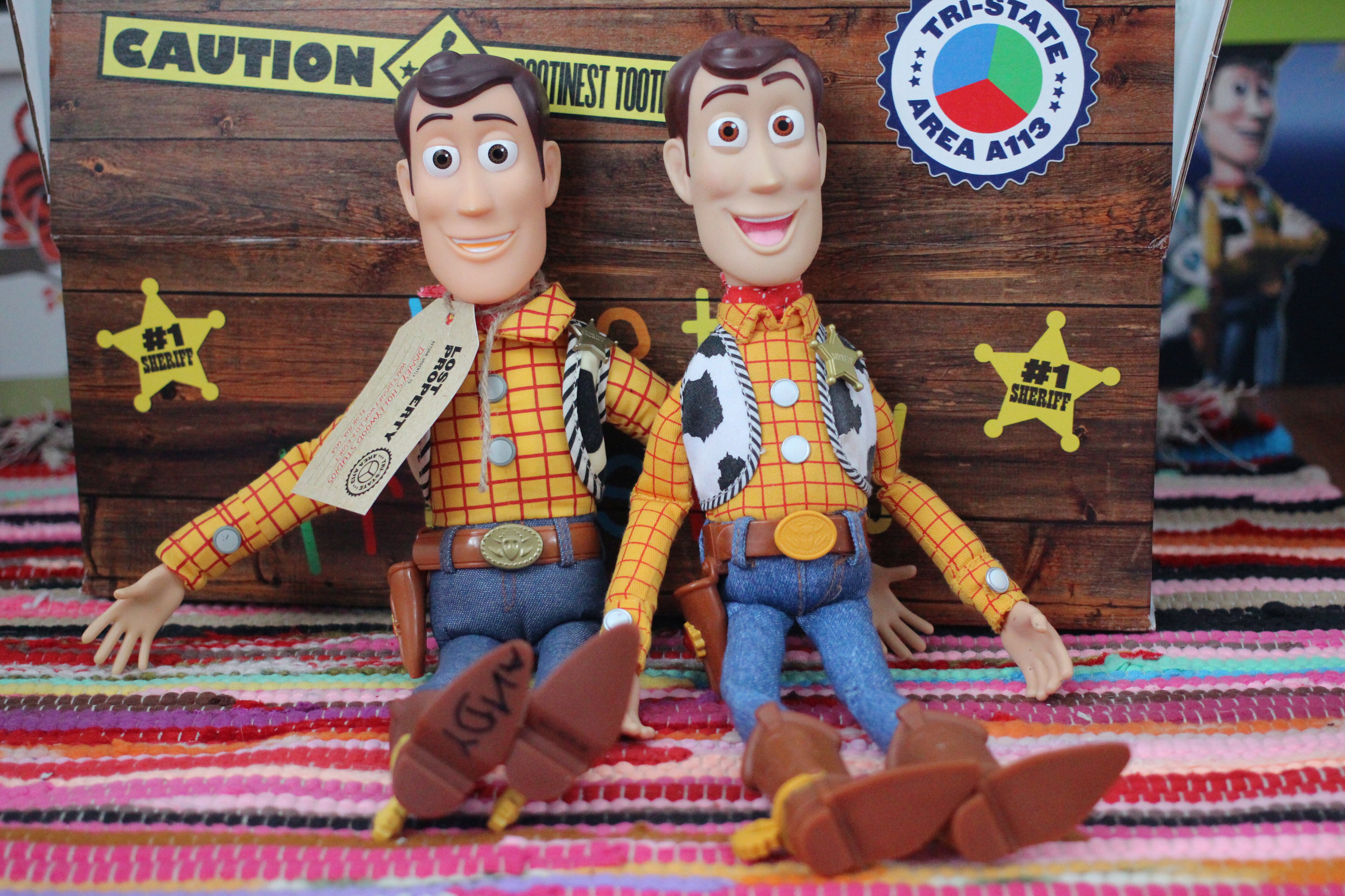 As a Woody doll, he’s pretty nice! His outfit is quite detailed and his face is a different face mould to any Woody’s I already have which is nice, and he just looks really smart and quite special. His body is not my favourite but it’s ok. His arms stick out a bit and he just doesn’t have the same “movement” as many other Woody’s for placing his arms and legs in certain positions etc. But aside from that, he really is a gorgeous doll. He has Andy written on his boot Andy he does have a working pull string and says some of the usual Woody phrases. I have included a couple of photos of him with a ThinkWay Toys Woody just to show some of the differences. I love them both in different ways ?